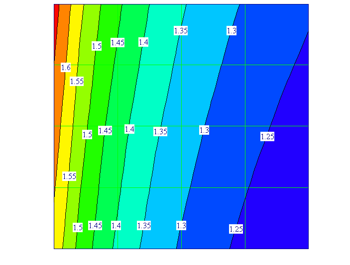 Verbesserungsfaktor nach Priebe (x-Achse = Säulenabstand, y-Achse = Säulentiefe)